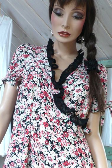 Överdelen på klänningen är dubbel, men inte underdelen. Du kan antingen kombinera med kjolen i samma tyg (som på bilden), eller ha till exempel en tunn vit chiffonklänning under. De två bilderna längst ner visar pyjamasdelarna.måndag 6 februari 2012
